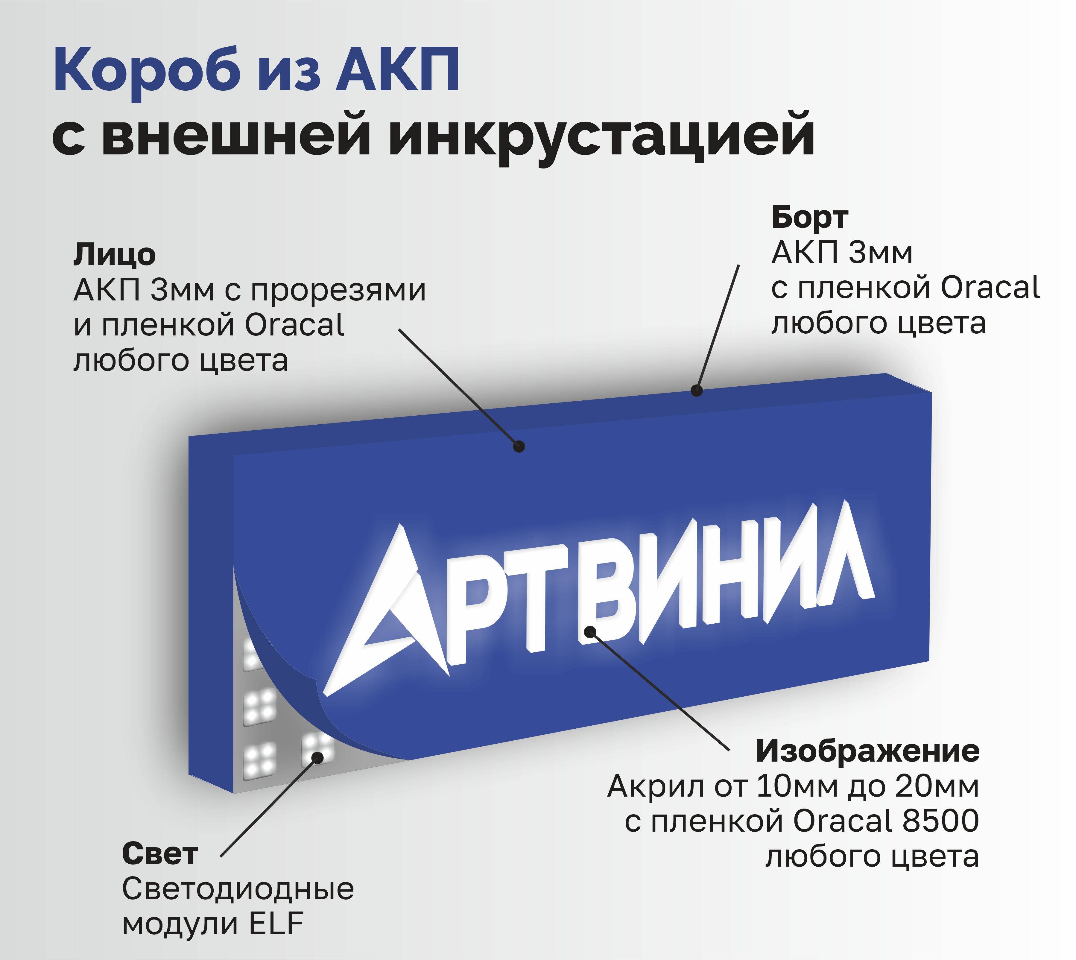 Такой короб, изготовленный с применением современных материалов, прекрасно вписывается в интерьер помещений или украшает фасад зданий, где он гармонирует с другими видами рекламы.