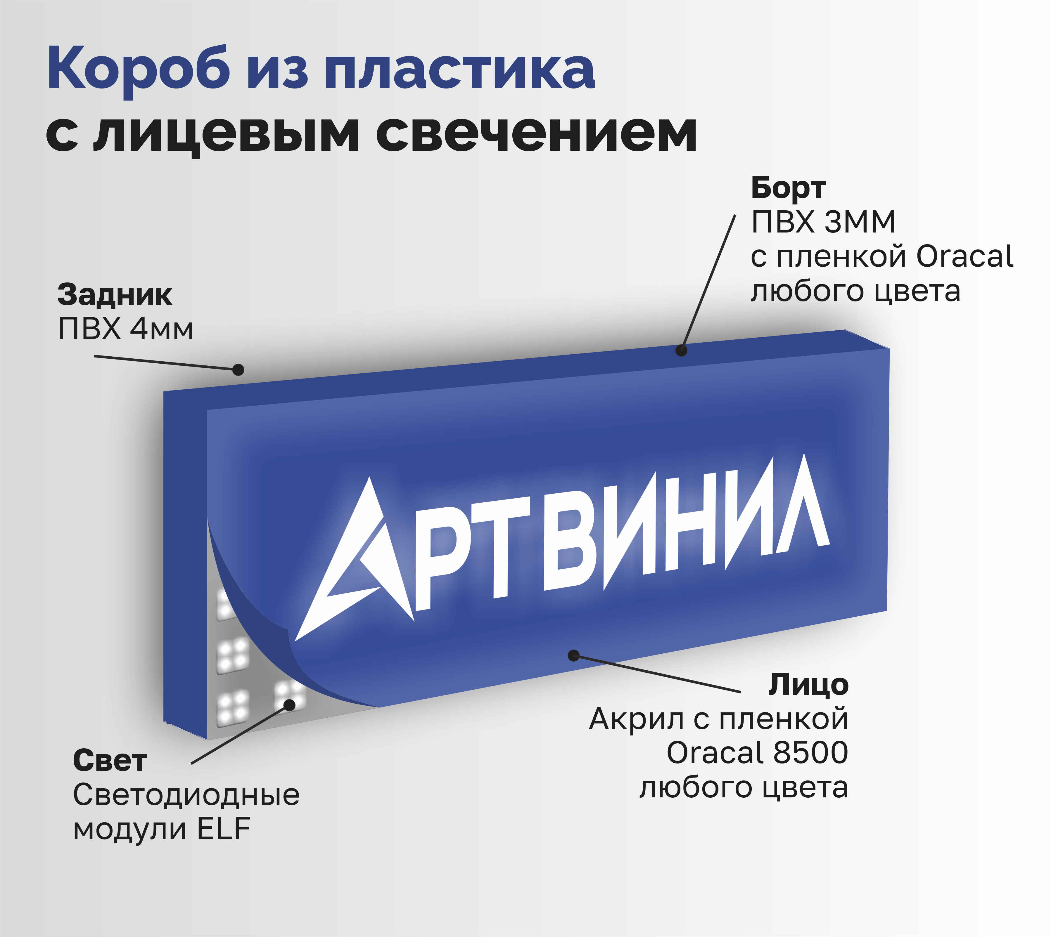 Такой короб, изготовленный с применением современных материалов, прекрасно вписывается в интерьер помещений или украшает фасад зданий, где он гармонирует с другими видами рекламы.