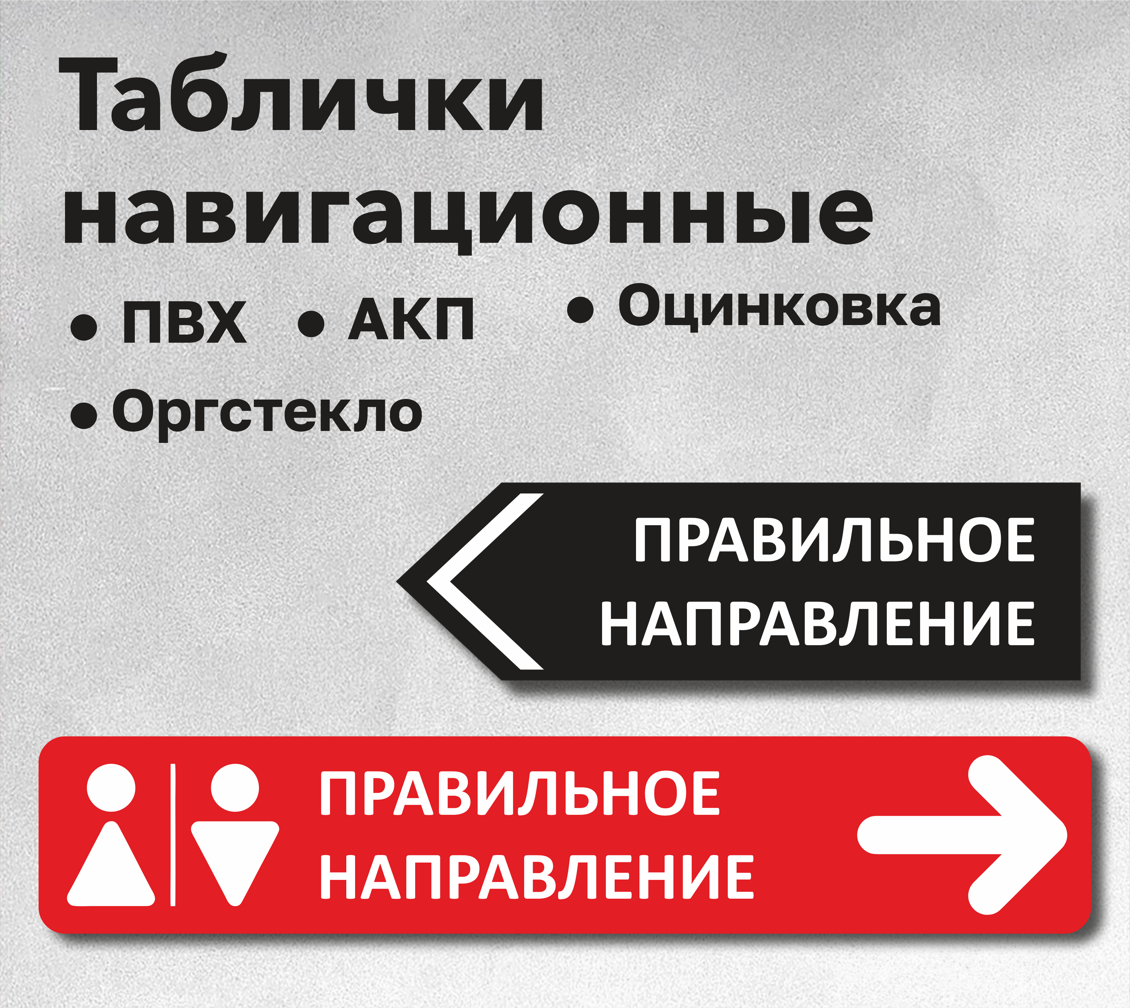 Информационные и рекламные таблички используются повсеместно. Материал из которого может быть сделана табличка может быть как пластик (ПВХ, орстекло) так и металл (АКП, оцинковка). Для изготовления элементов применяются разные технологии нанесения информации, включая лазерную гравировку.
